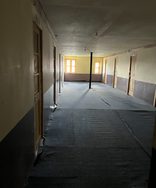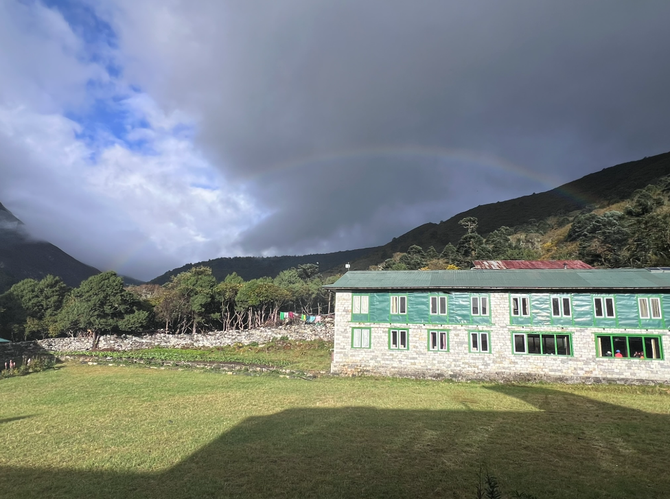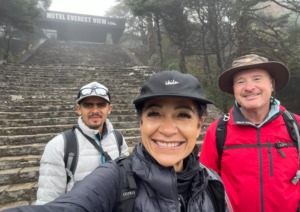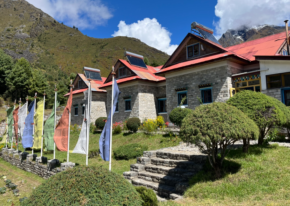 Continuing our ascent, we passed a yoga center before reaching our destination, the Hotel Everest View teahouse. We were told that on a clear day, you could see all the mountains from there. Unfortunately, the clouds had other plans, and our view was obscured. But the primary goal was to gain some elevation, and that we did.