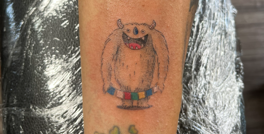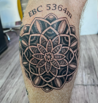 We arrived at Jhee Tattoo Shop early, which turned out to be a good move. Alicia's tattoo—a cute Yeti on her arm—took just 45 minutes. Mine, however, was a different story. My huge mandala on my leg, complete with EBC and the elevation in meters, took a whopping 3.5 hours.