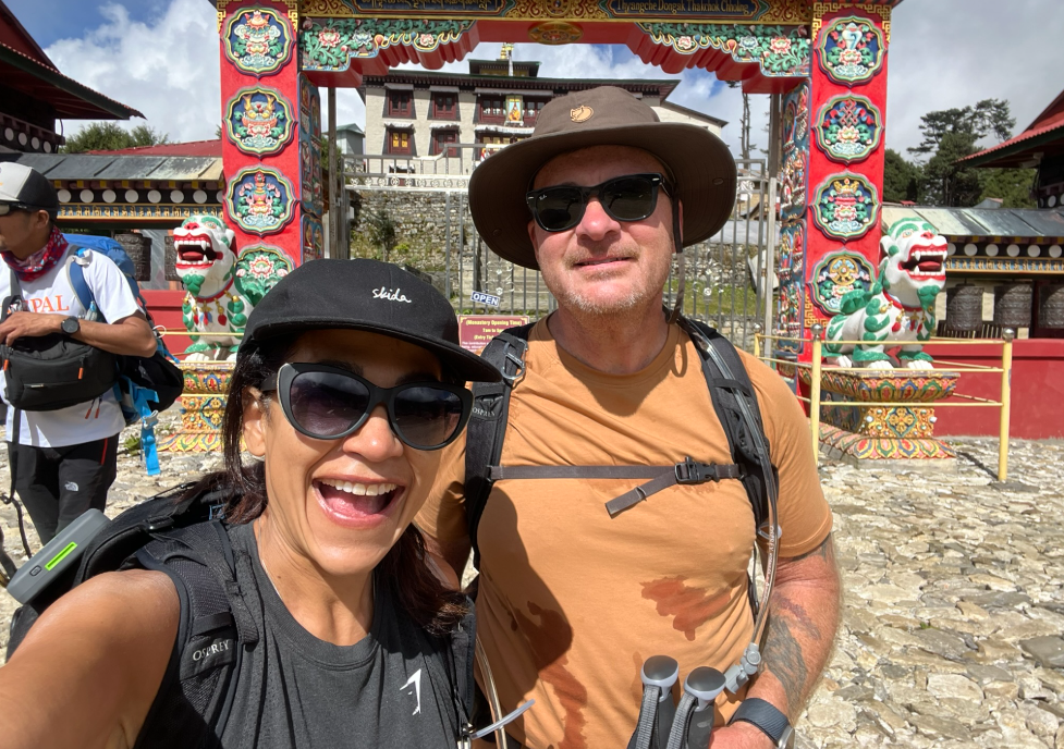 Reaching EBC was an emotional moment. Nine grueling days had paid off. The weather was beautiful, the views were stunning, and we did it. The emotions were overwhelming. I never doubted I would make it unless I got sick or injured. Alicia, on the other hand, didn't have the same faith in me. I struggled hard on the climb, but like I said, I'm a Clydesdale, not a Thoroughbred. I kept my mind on each step in front of me—Bistarai, Bistarai (Slowly, Slowly).
