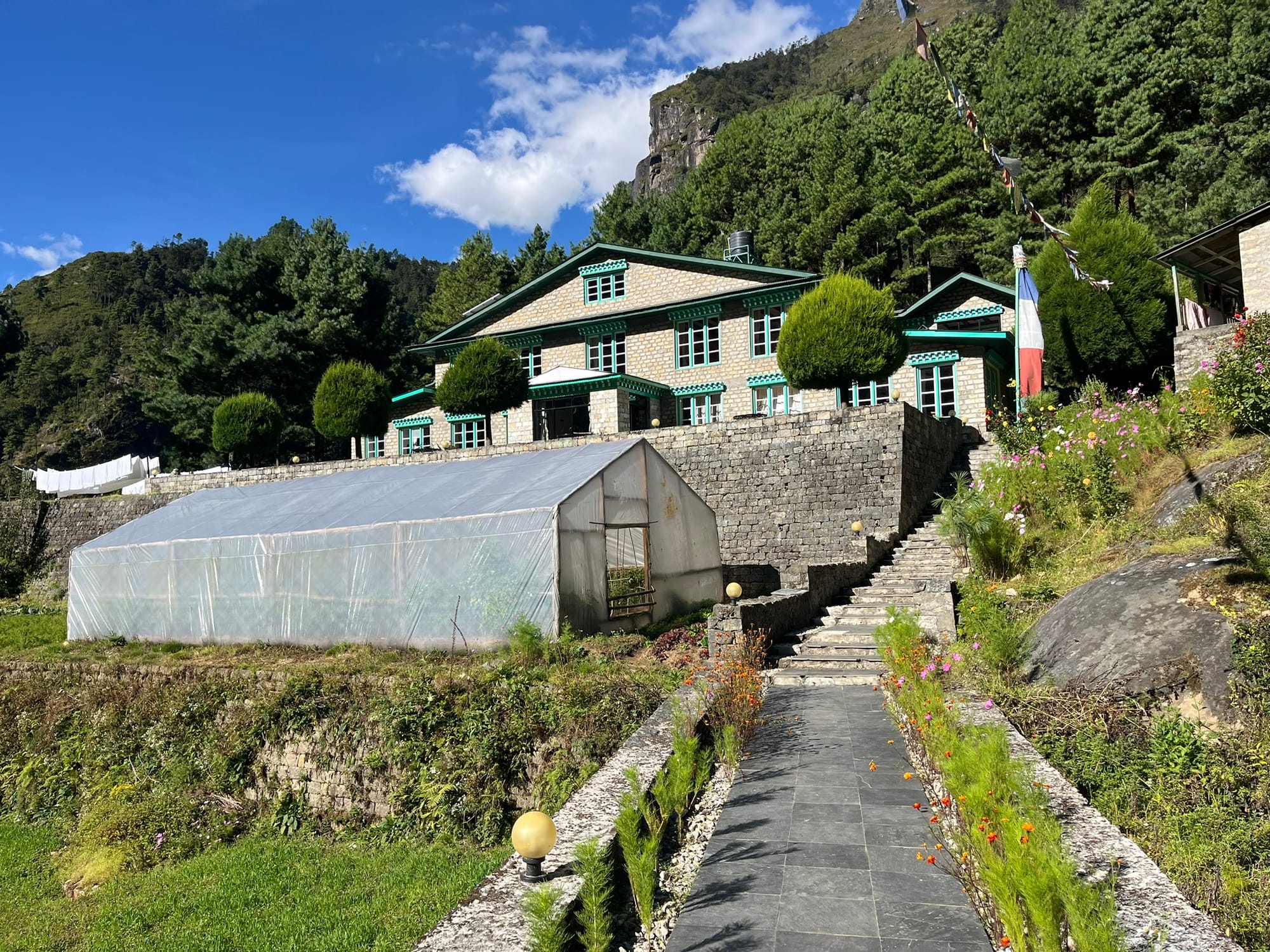 Continuing our ascent, we passed a yoga center before reaching our destination, the Hotel Everest View teahouse. We were told that on a clear day, you could see all the mountains from there. Unfortunately, the clouds had other plans, and our view was obscured. But the primary goal was to gain some elevation, and that we did.