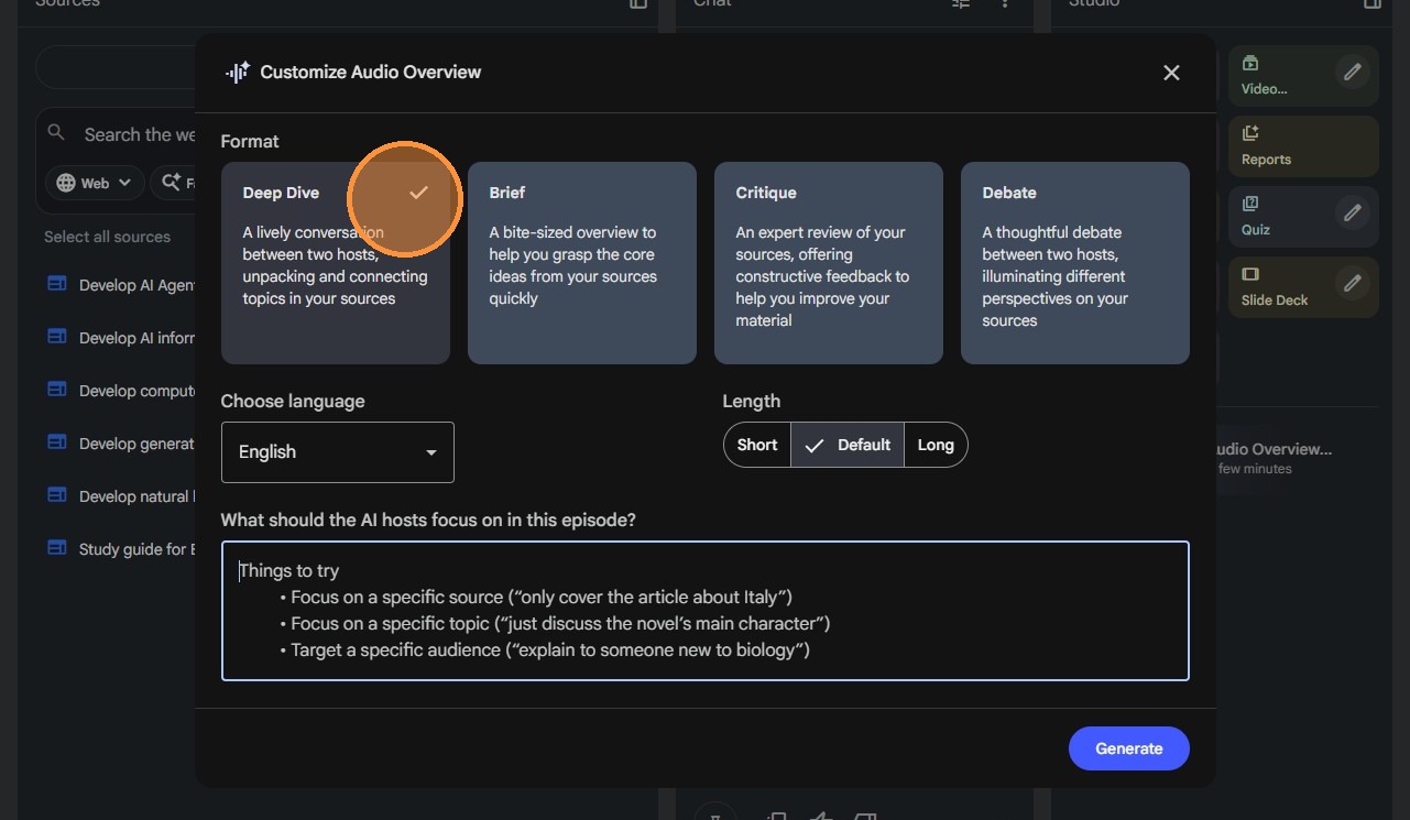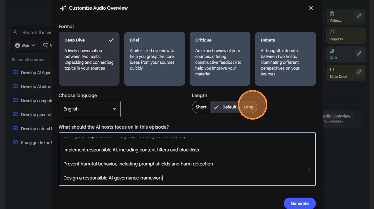 - The podcast should be "focused," meaning it needs clear learning objectives and structured progression through topics