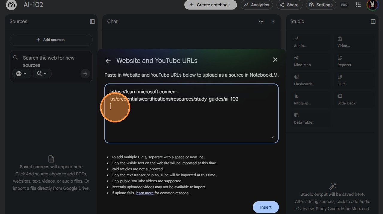 19. When all training links have been pasted in, Click "Insert".