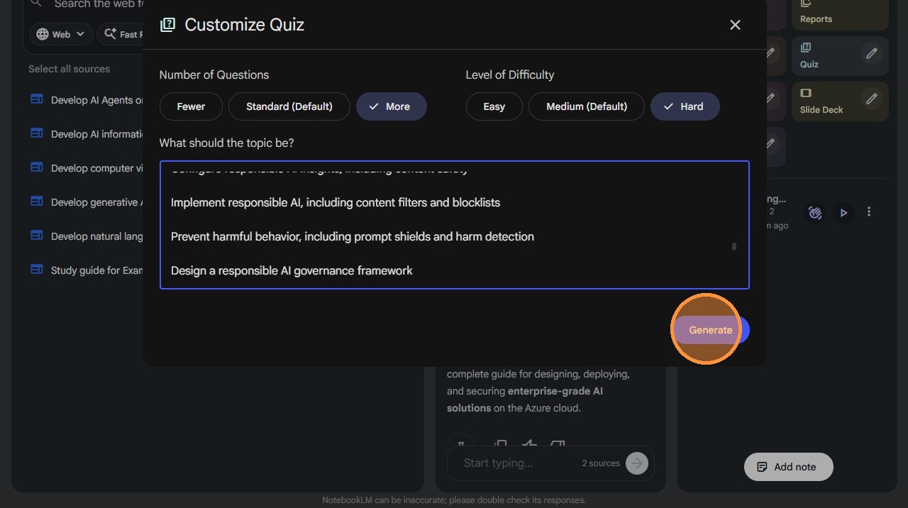 10. Select the certification to use for creating the Podcast and Quiz.