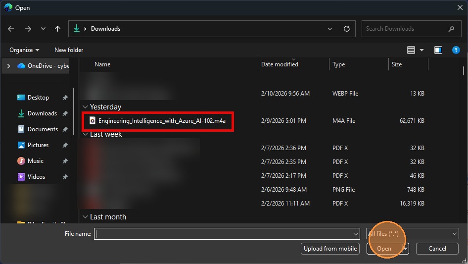 41. Select Audio File > Click Open.