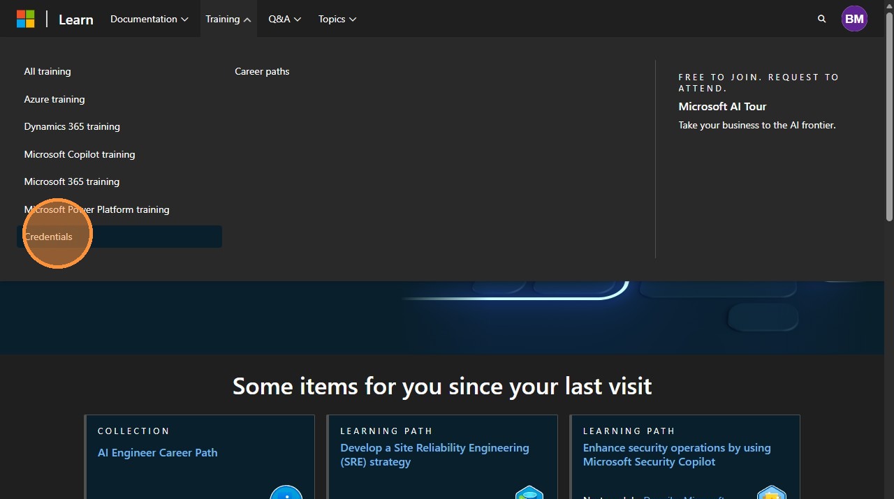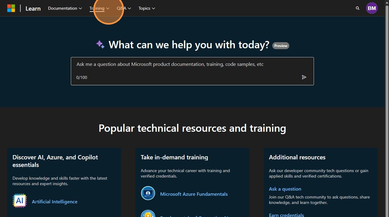 6. In a new tab, navigate to https://learn.microsoft.com/en-us/.