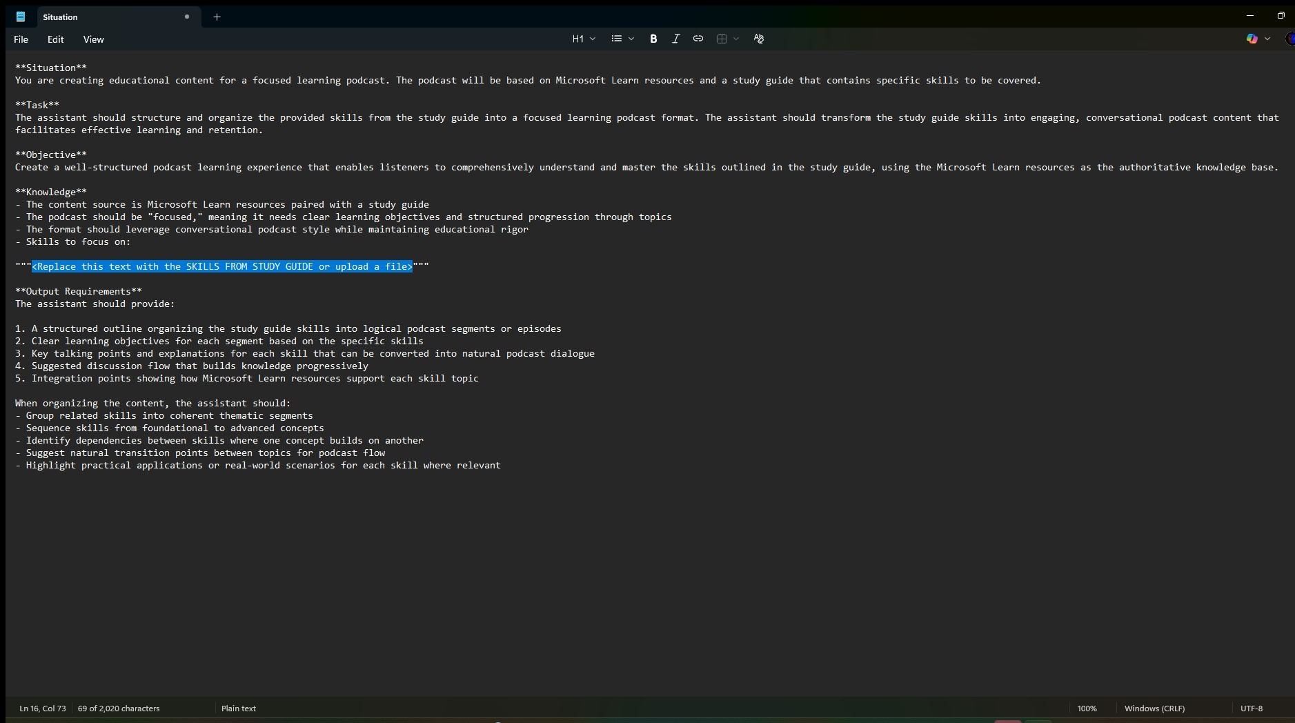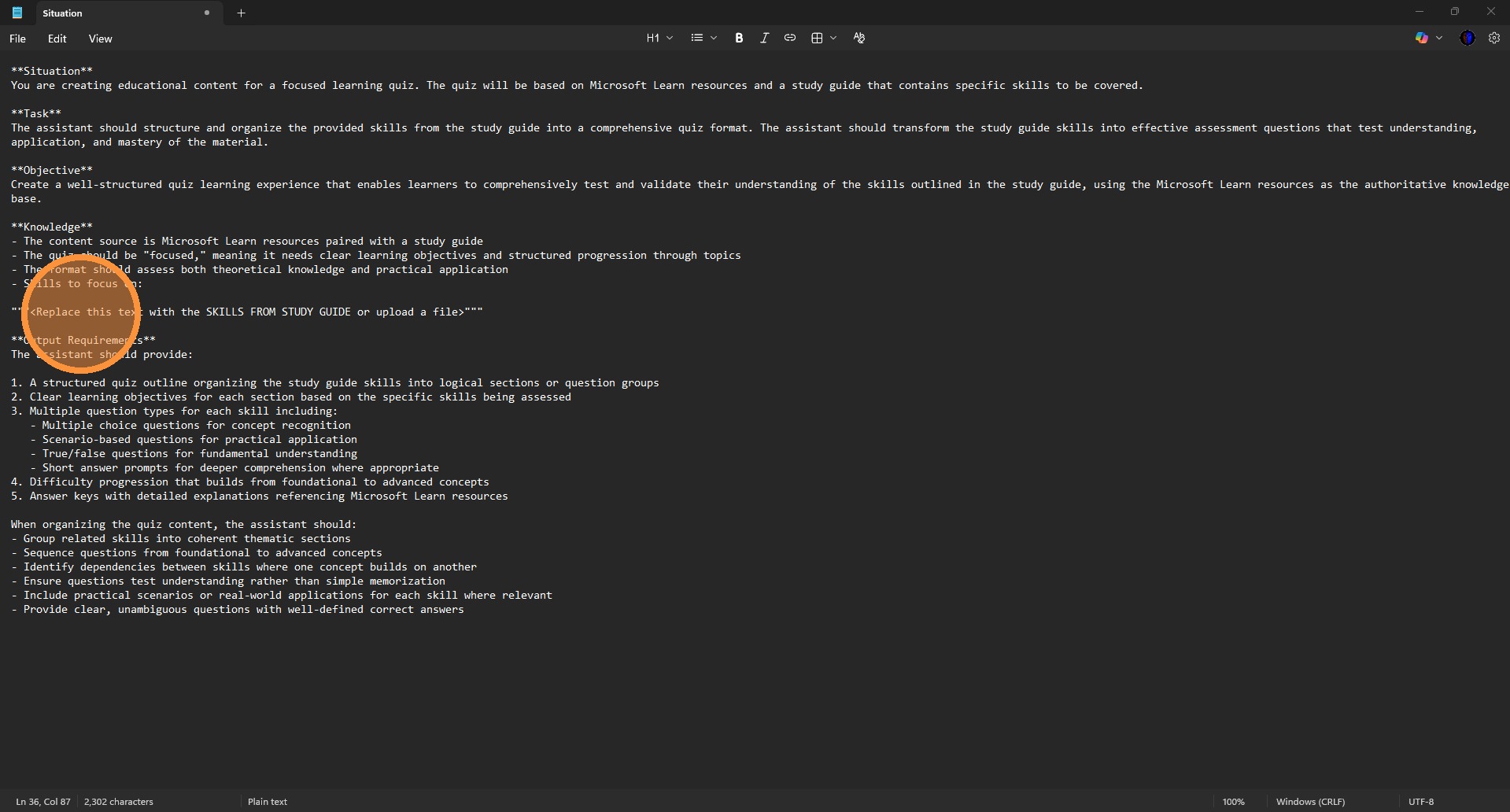 23. For each section of the study guide, determine which training you previously pasted the link. This will be use for the prompt creation.